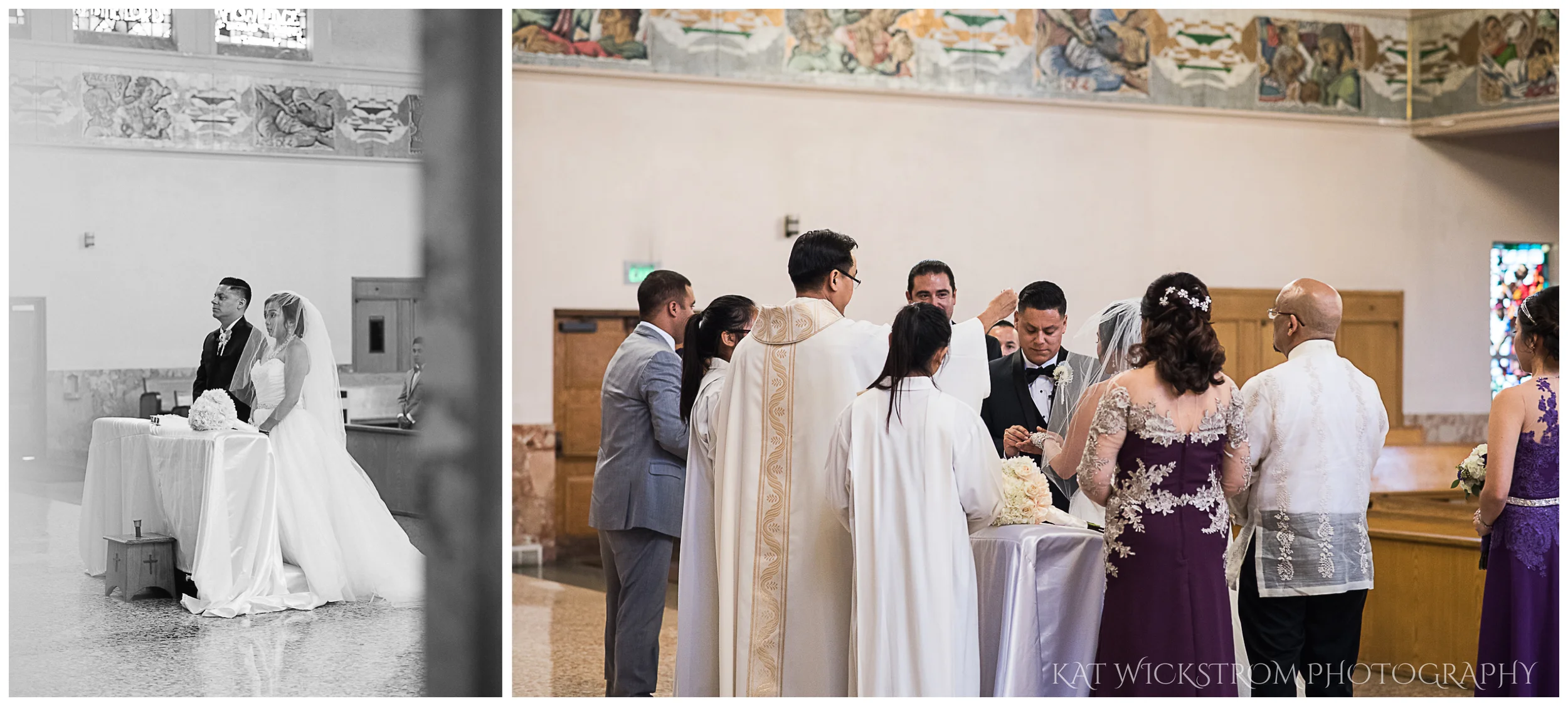 After a short trip, we arrived at the St. Boniface Catholic Church in Anaheim. It was a beautiful ceremony. Even when the priest led them through a strange order of events (he accidently announced them wed, didn't ask them to kiss, and then realized he forgot the offering to the Virgin Mary), no one was phased.