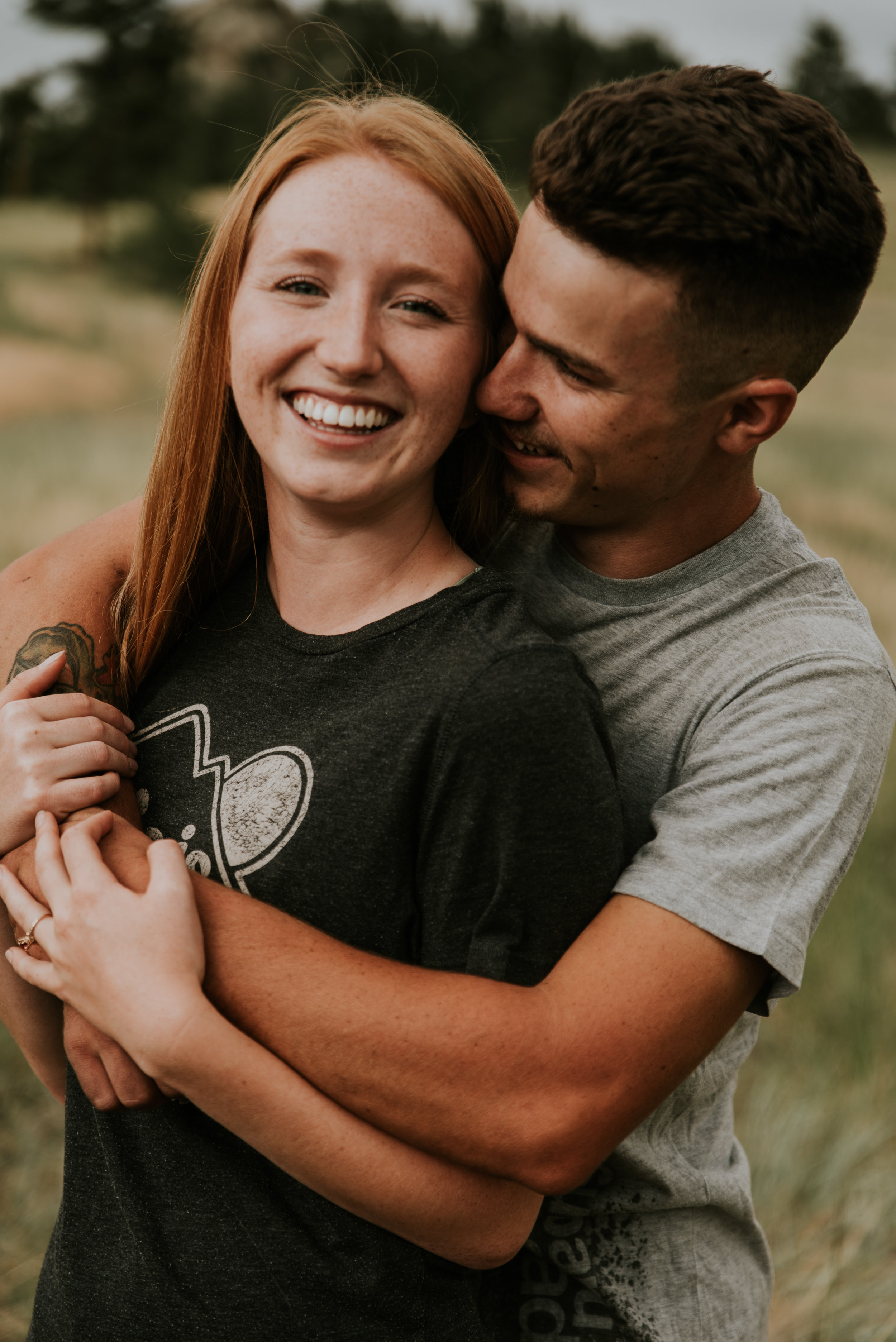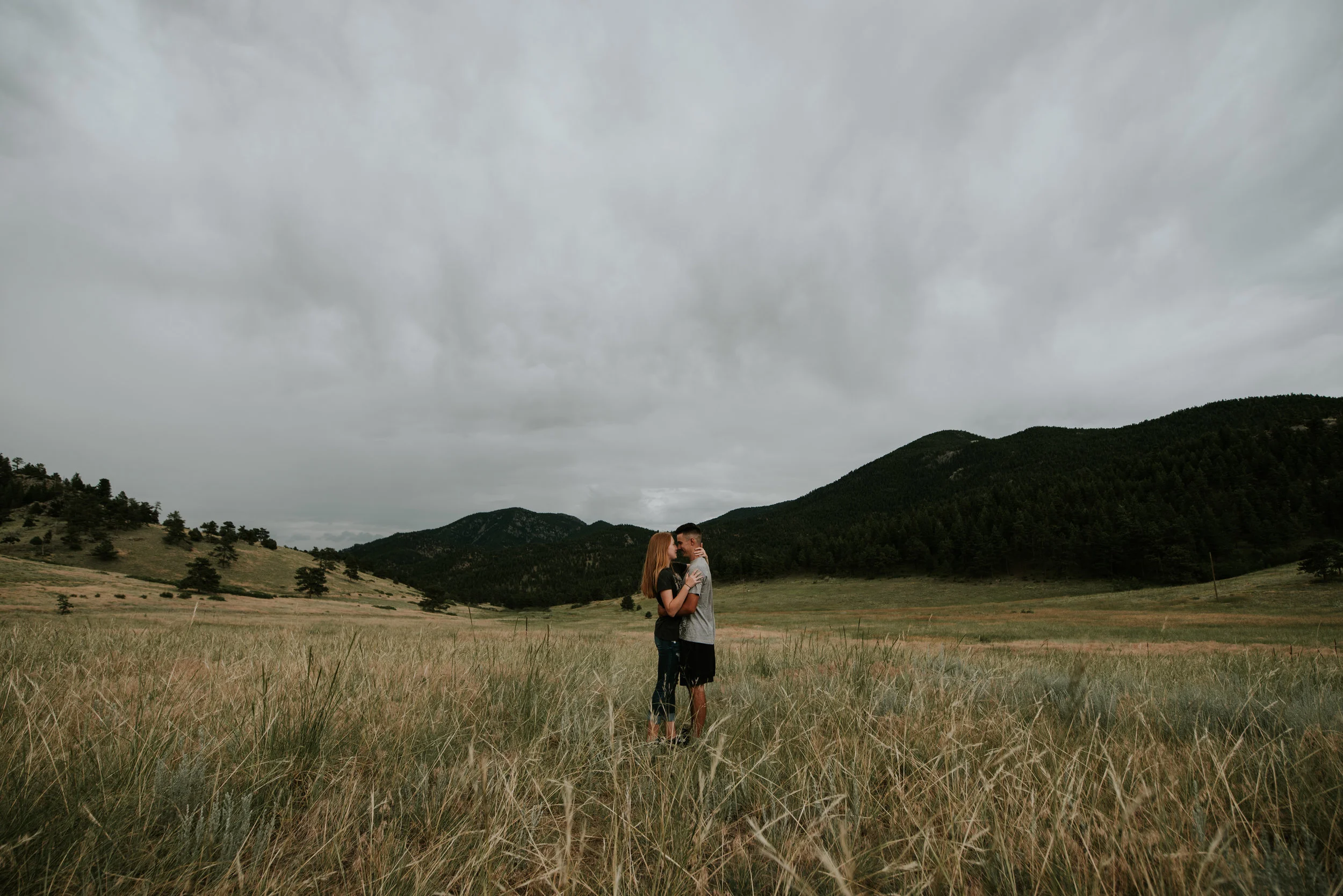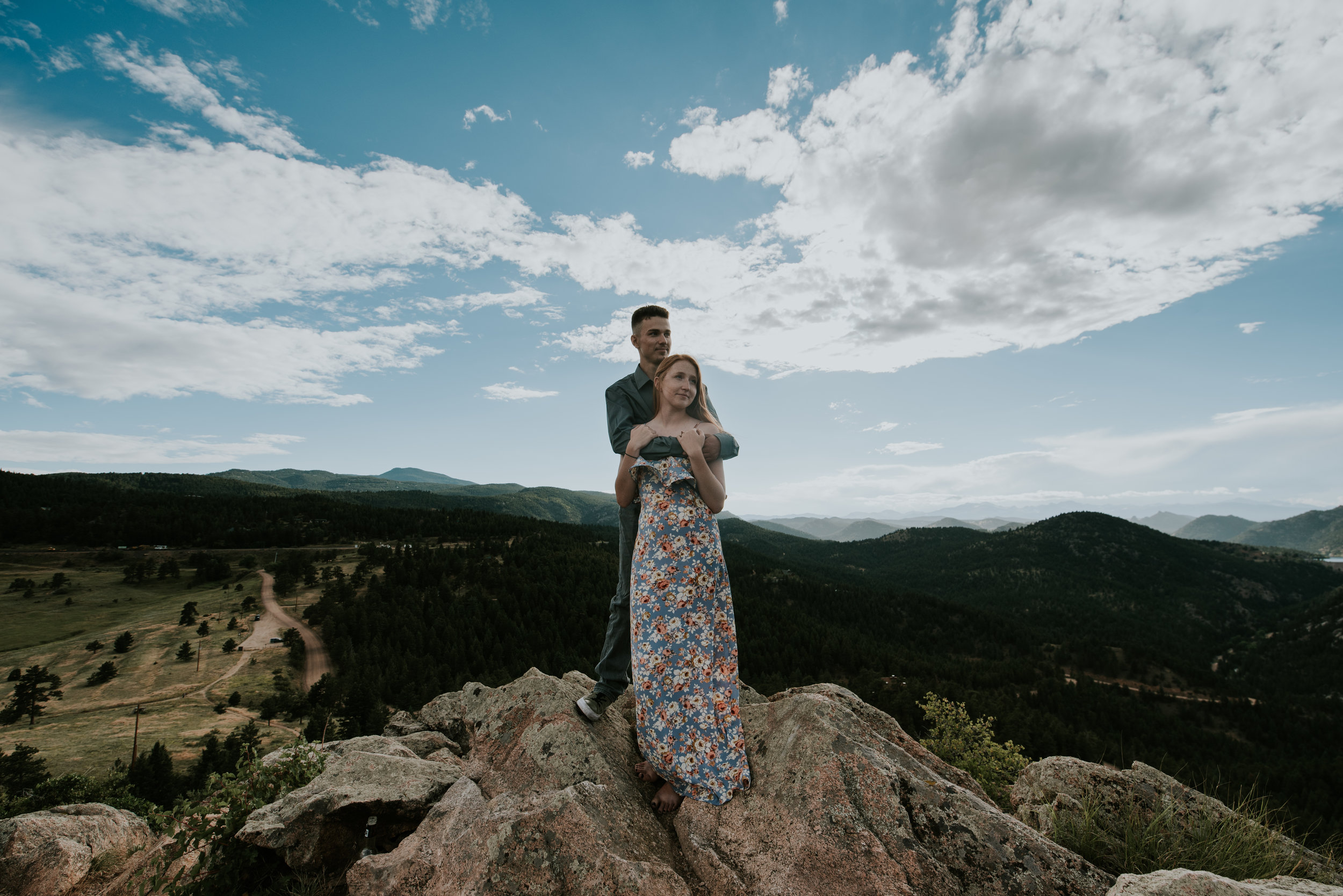 I was so excited to photograph their engagement, not only because of my own secret desires to live the vanlife but because we went to this gorgeous park where we were threatened by rain storms multiple times. Eldorado State Park is nestled behind the Gross Reservoir near Boulder, Colorado. Driving down dirt roads to get there, a rock formation juts up and provides a really cool spot to do some sweeping environment shots.