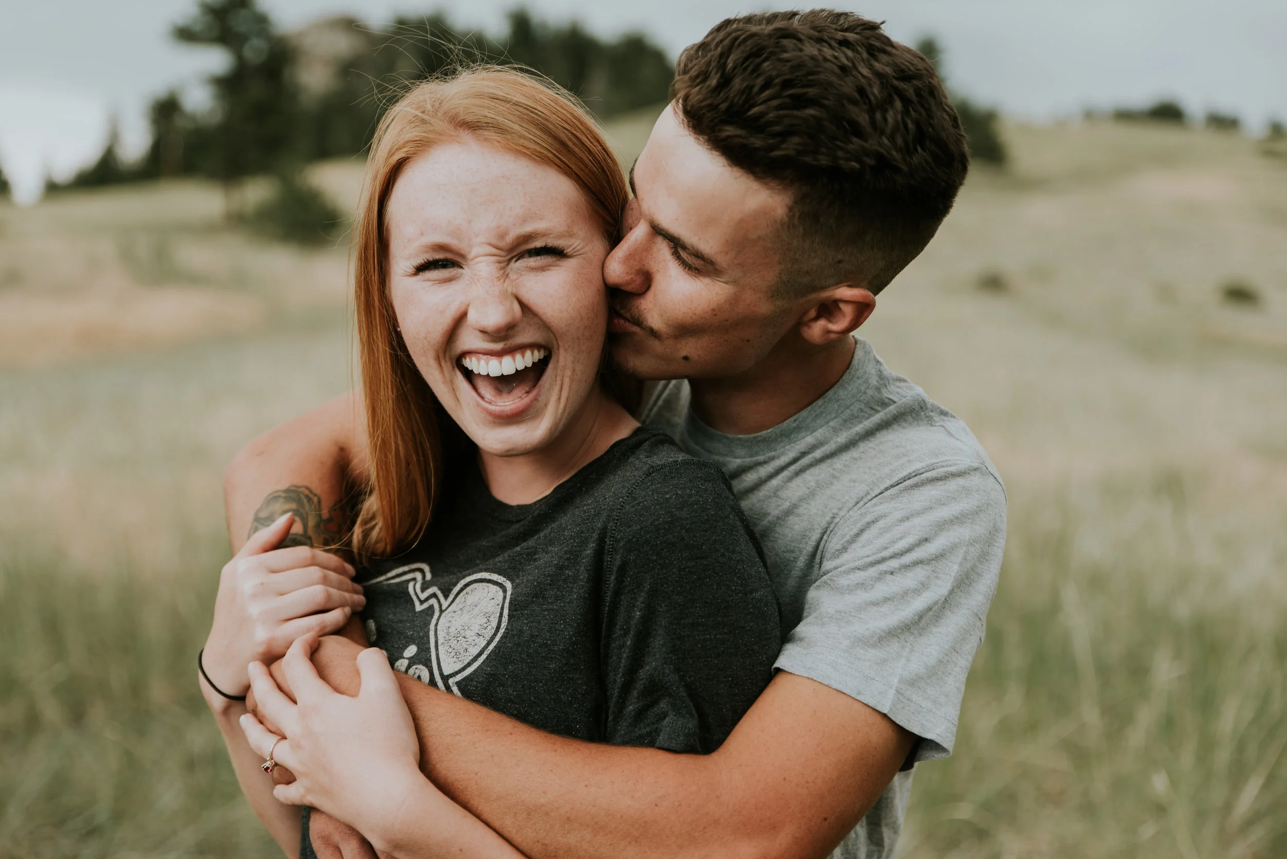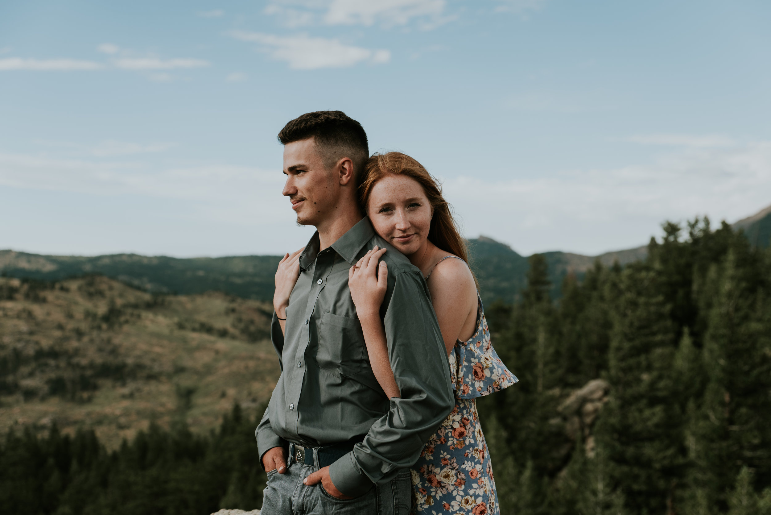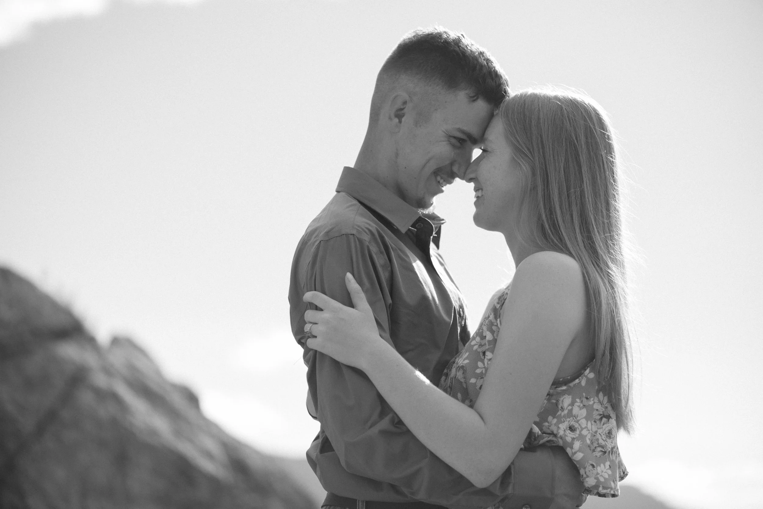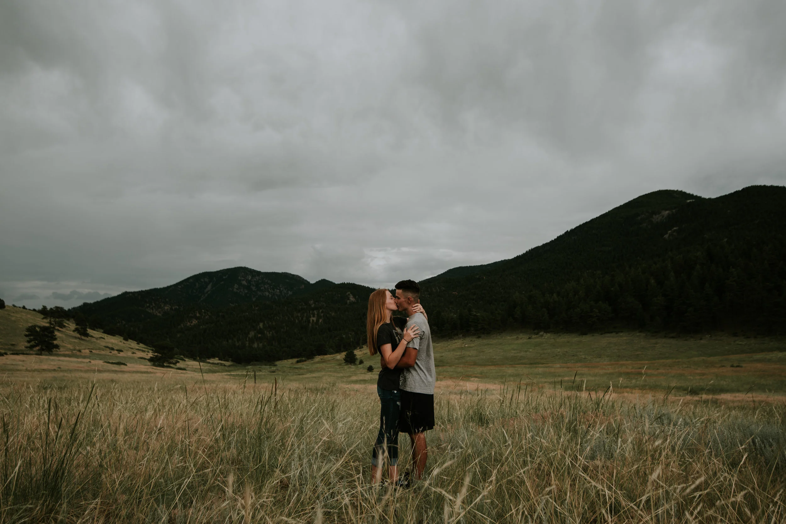 I was so excited to photograph their engagement, not only because of my own secret desires to live the vanlife but because we went to this gorgeous park where we were threatened by rain storms multiple times. Eldorado State Park is nestled behind the Gross Reservoir near Boulder, Colorado. Driving down dirt roads to get there, a rock formation juts up and provides a really cool spot to do some sweeping environment shots.