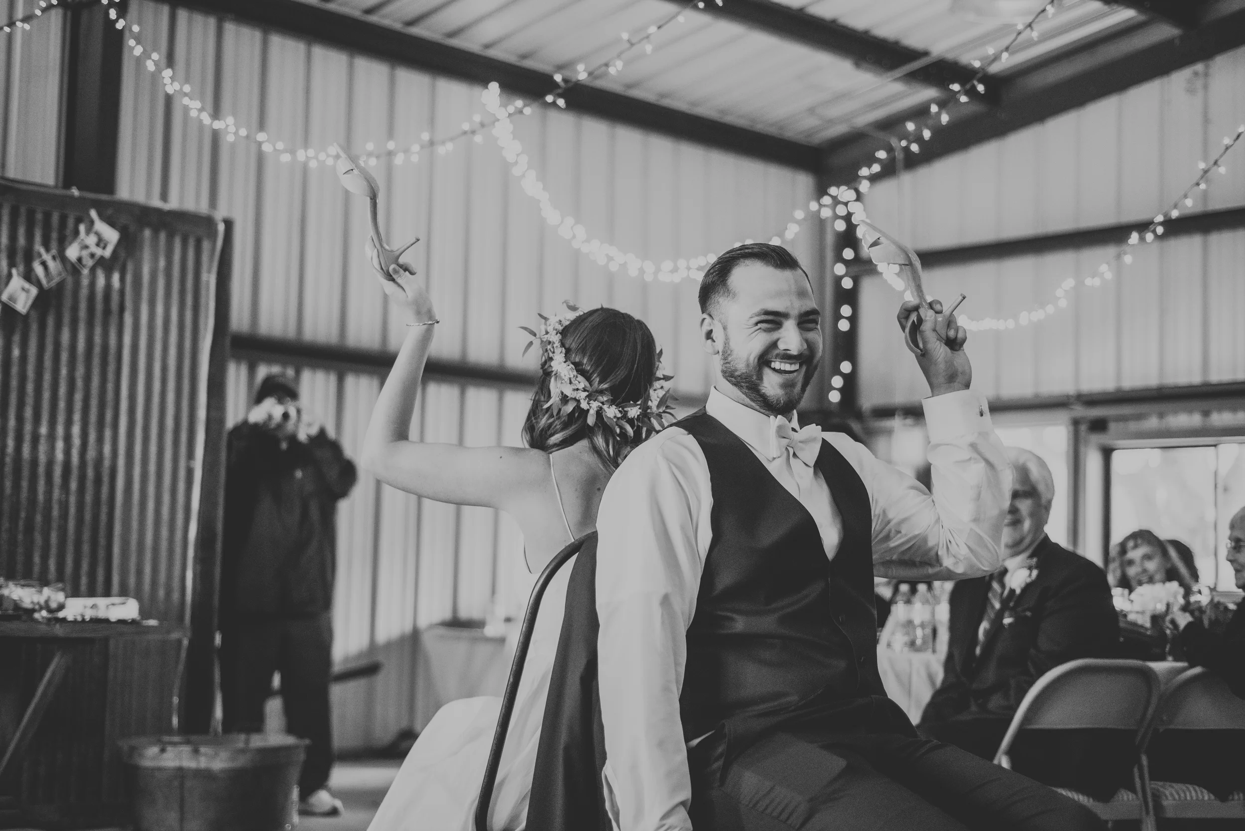 This is probably the most fun thing I've seen at a wedding. To really show yourself to your guests, play a game with your significant other. It breaks up the time during reception, and allows for many laughs. In this particular game, the bride and groom were asked questions and told to raise the shoe belonging to the individual that the question pertains to. For example: who would flake on the laundry more? Or who made the first move?