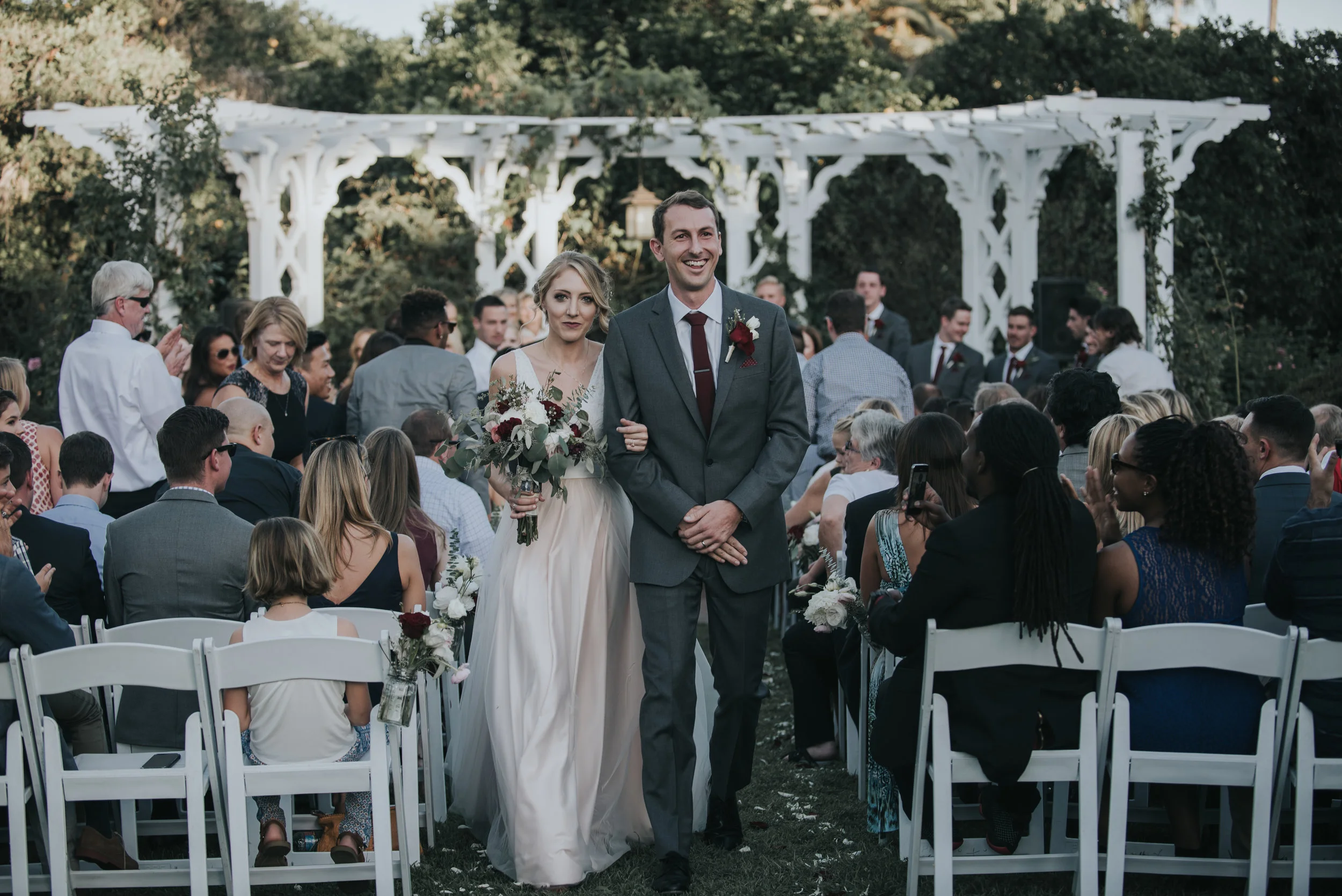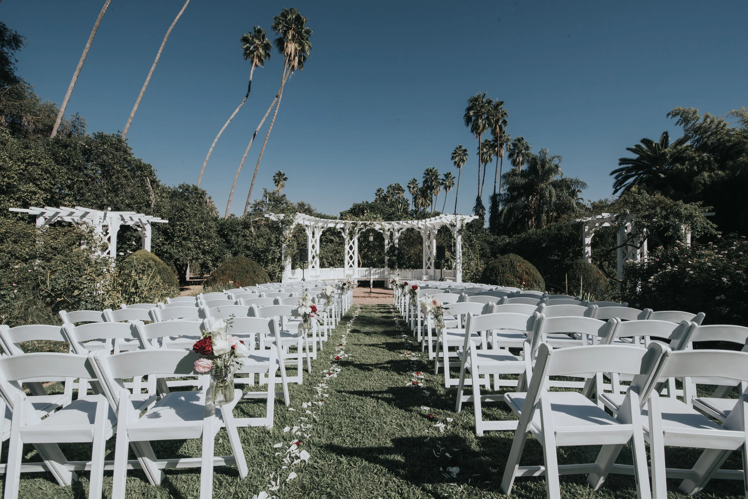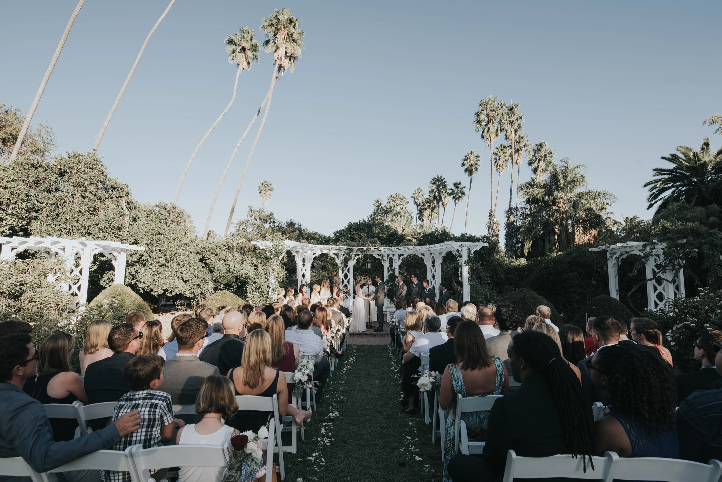 The day started with a heat warning, and we were all a little bit worried about the ceremony in the Rose Garden of the LA Arboretum. But we all kept our cool (see what I did there?) and continued to forge ahead and hope the location wouldn't be too hot. Ryan and Danielle were a picture of romance and happiness. And I think you'll agree after seeing these photos, they are a stunning pair. I'm pretty sure her wedding dress was everything I've ever wanted to see in a bridal gown. The colors, the details, everything was simply stunning.
